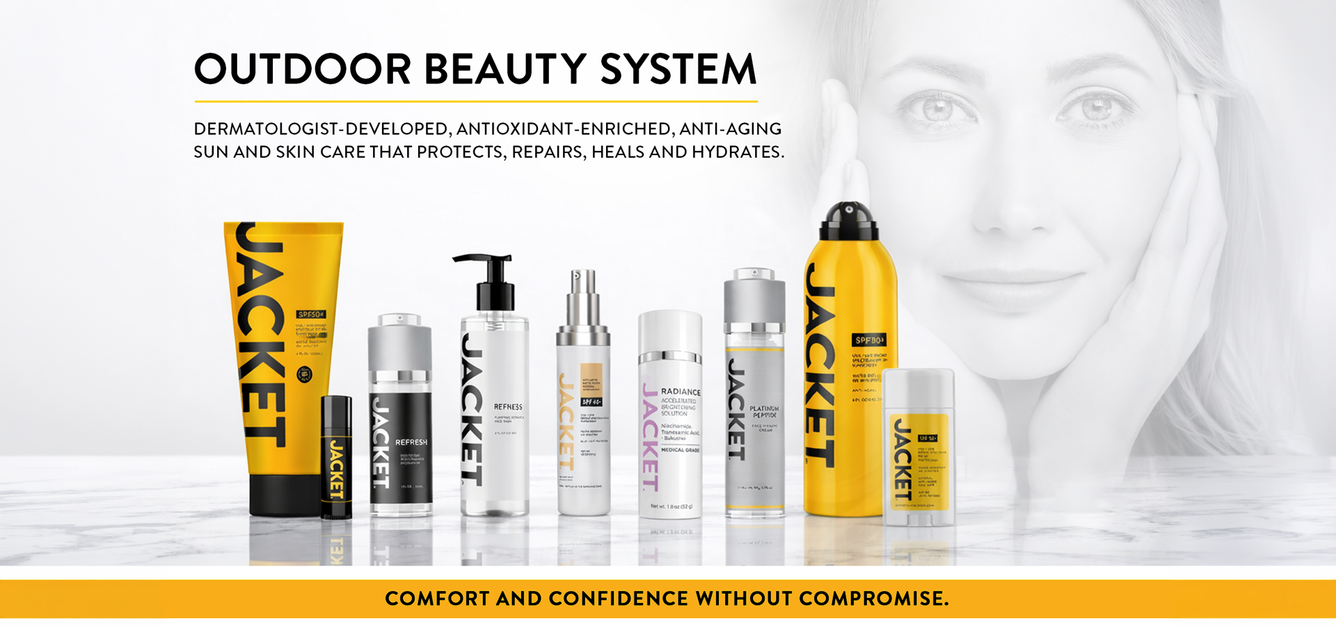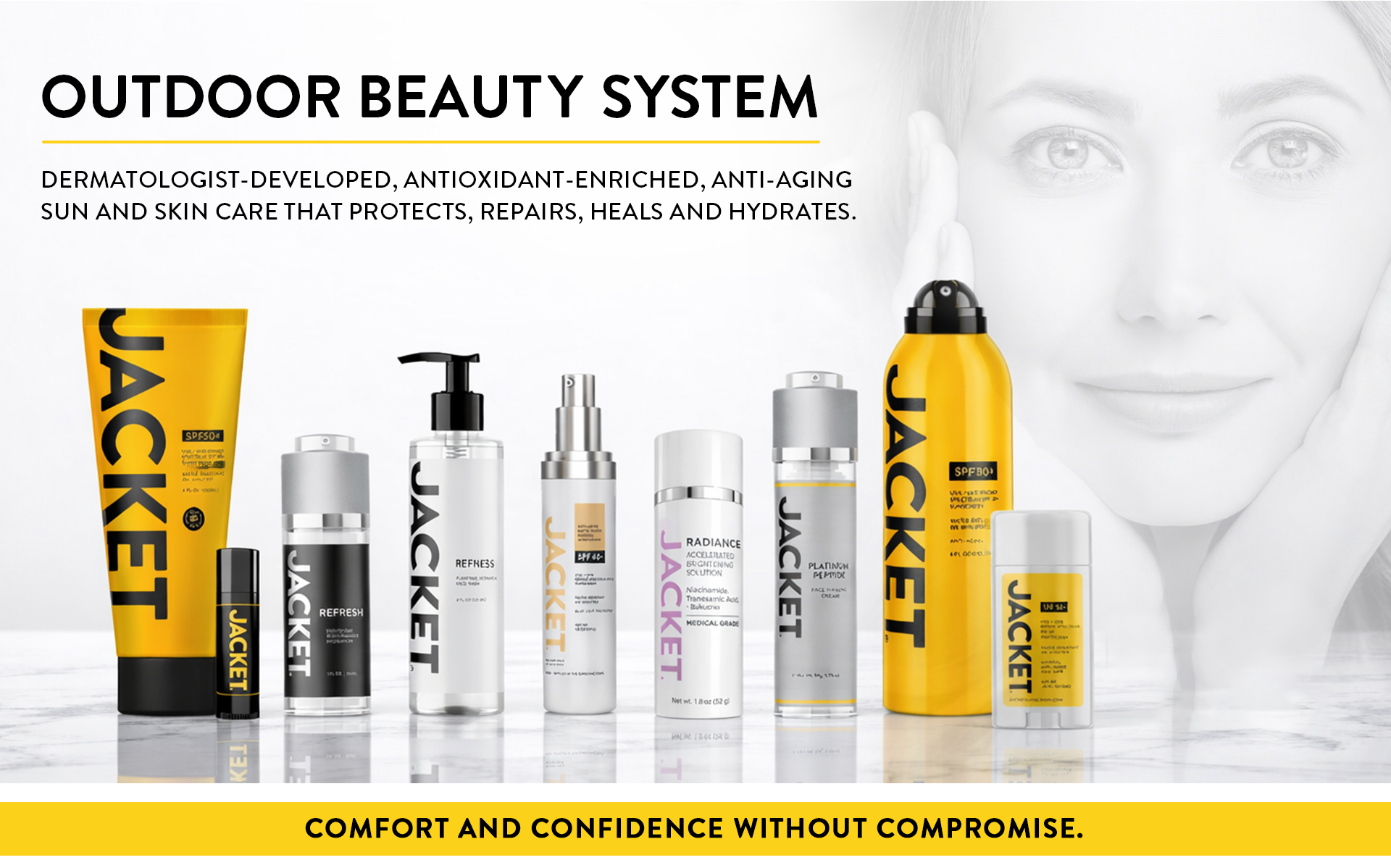 JACKET is a small-batch, dermatologist-developed sunscreen with an exclusive collection of antioxidants and vitamins that defend against harmful UV rays and help reverse existing sun damage and signs of premature aging. The weightless formula naturally hydrates, promotes collagen production, cleans up free radicals, improves blemishes and irritation, fades dark spots and smooths wrinkles. JACKET won’t clog pores and is safe and effective for all skin types, including those with sensitivities.